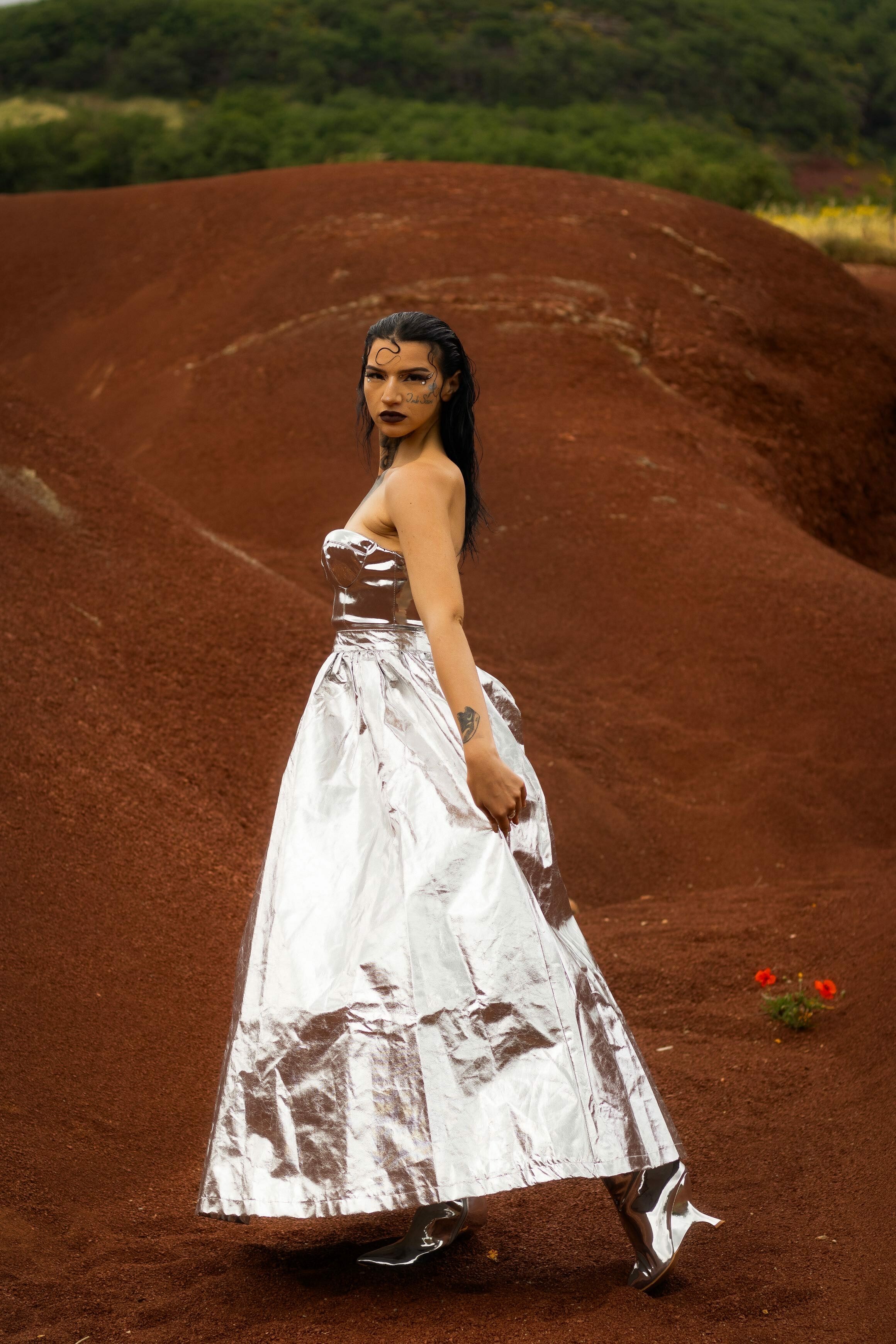Mon parcours est marqué par une transformation personnelle forte en ayant perdu 70 kg et une formation initiale en mode, qui m’a naturellement menée du design à l’incarnation des créations.